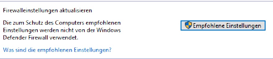 Hallo gute Computerbase- community, warum wird wenn ich unter "Systemsteuerung\System und Sicherheit" bei der "Windows Defender Firewall auf " Empfohlene Einstellungen klicke(siehe Screnshot), diese Meldung(siehe Screnshot) angezeigt?Ich will die Windows Firewall aktivieren.