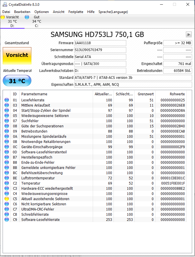 HDD: SAMSUNG HD753LJ 750GB