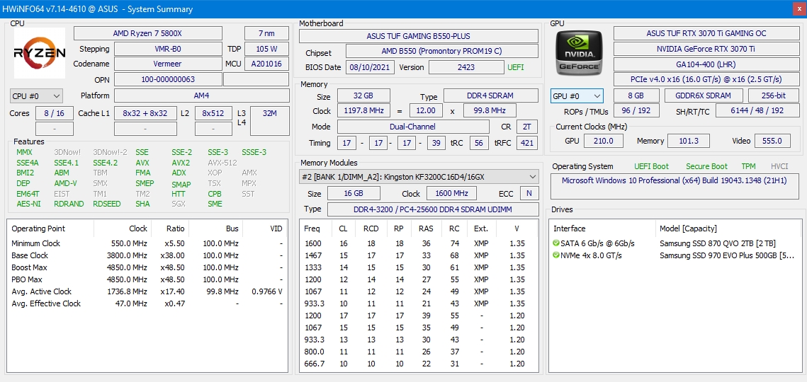 - 1x ASUS TUF-RTX3070TI-O8G-GAMING (90YV0GY0-M0NA00)
