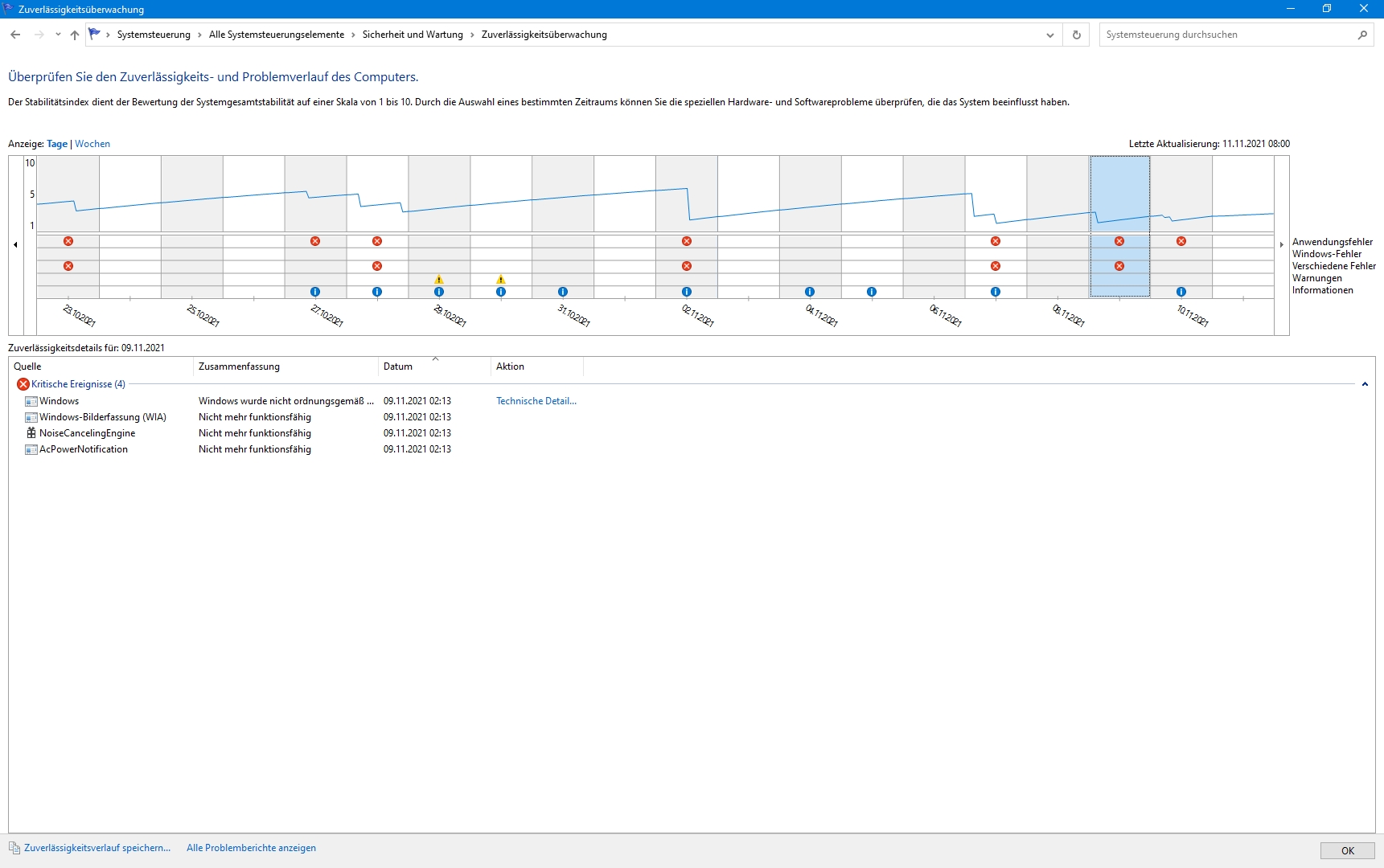 - Ereignisprotokoll durchsucht => keine Treffer, Protokolle sind sauber. Der Reset wird beim nÀchsten Start als solcher eingetragen