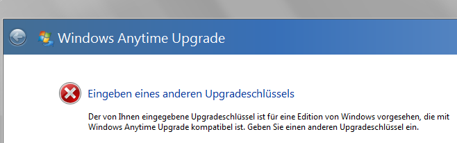 Vielleicht ein Hinweis: Der Win7 Pro-Key stammt von MSDNAA. Kann es damit zusammen hängen, dass die Versionen über Anytime nicht upgradefähig sind?
