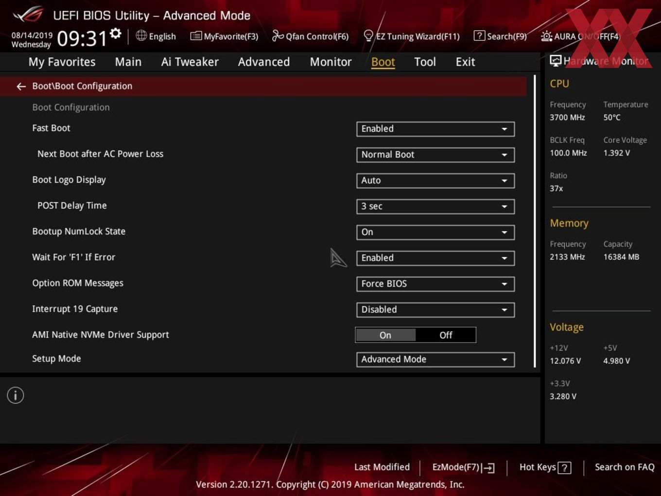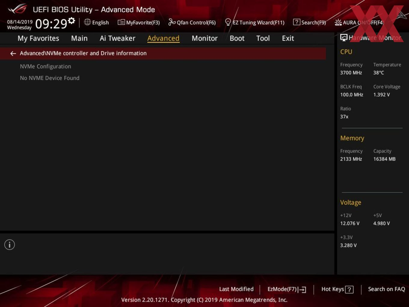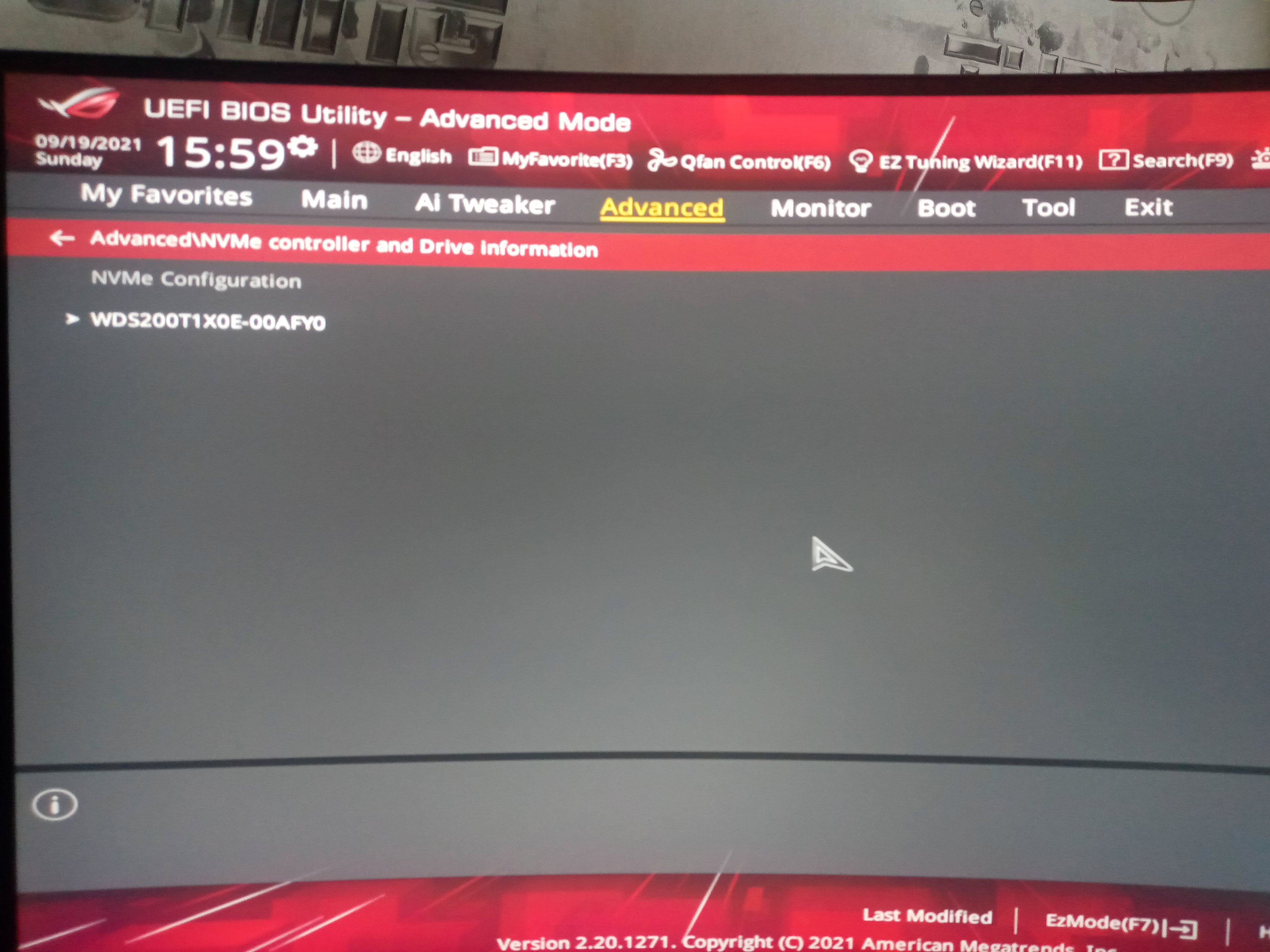 Und bei Advanced gucken, was da bei NVMe Configuration so steht