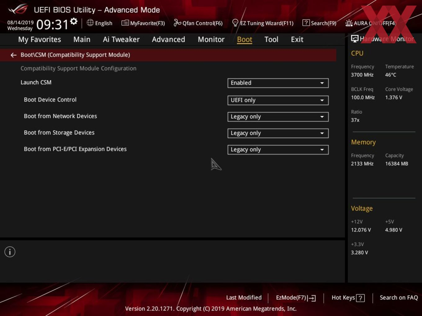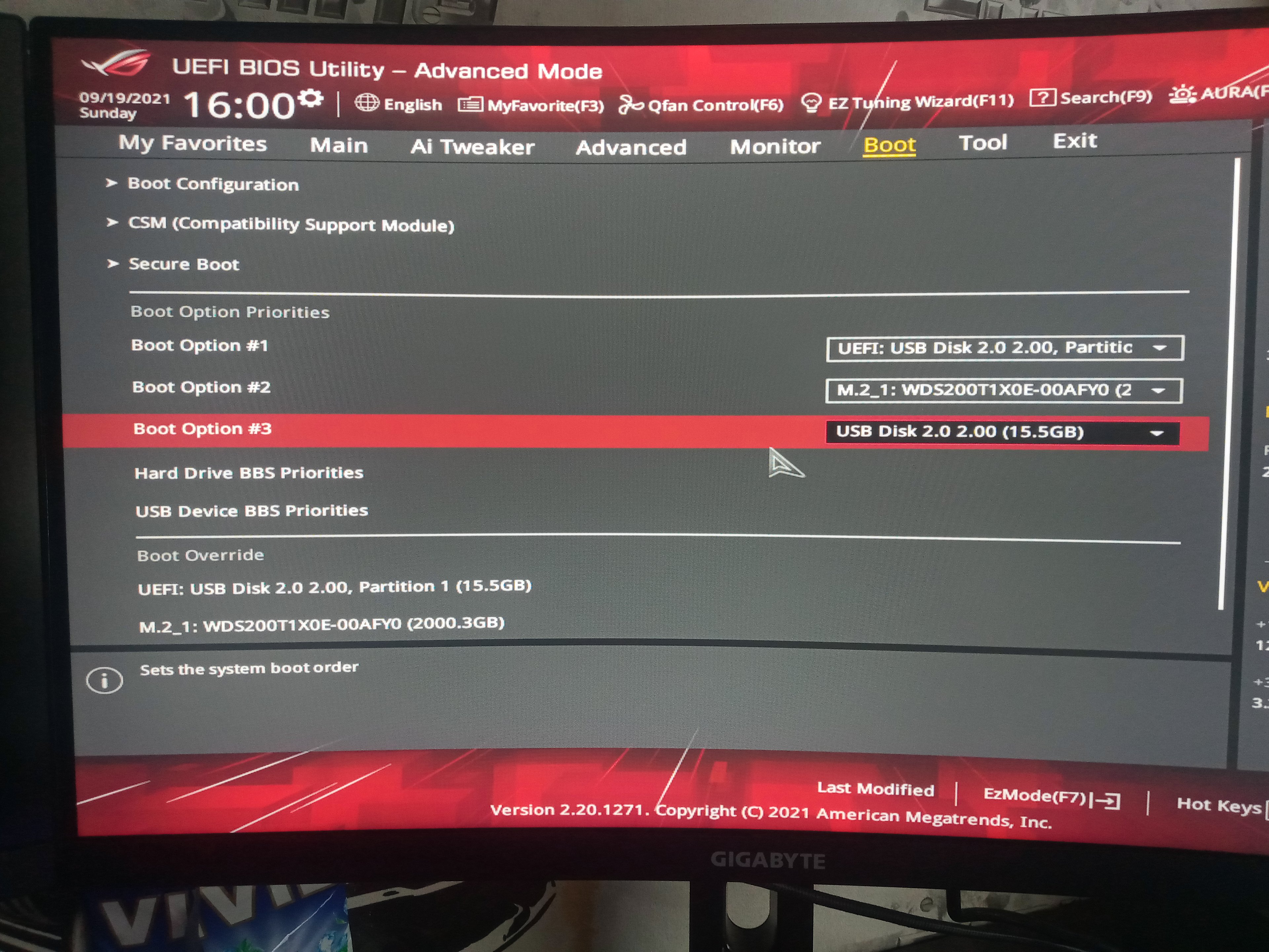 Setze das BIOS nochmal komplett zurück und achte darauf, dass bei CSM es auf "nur" UEFI steht.