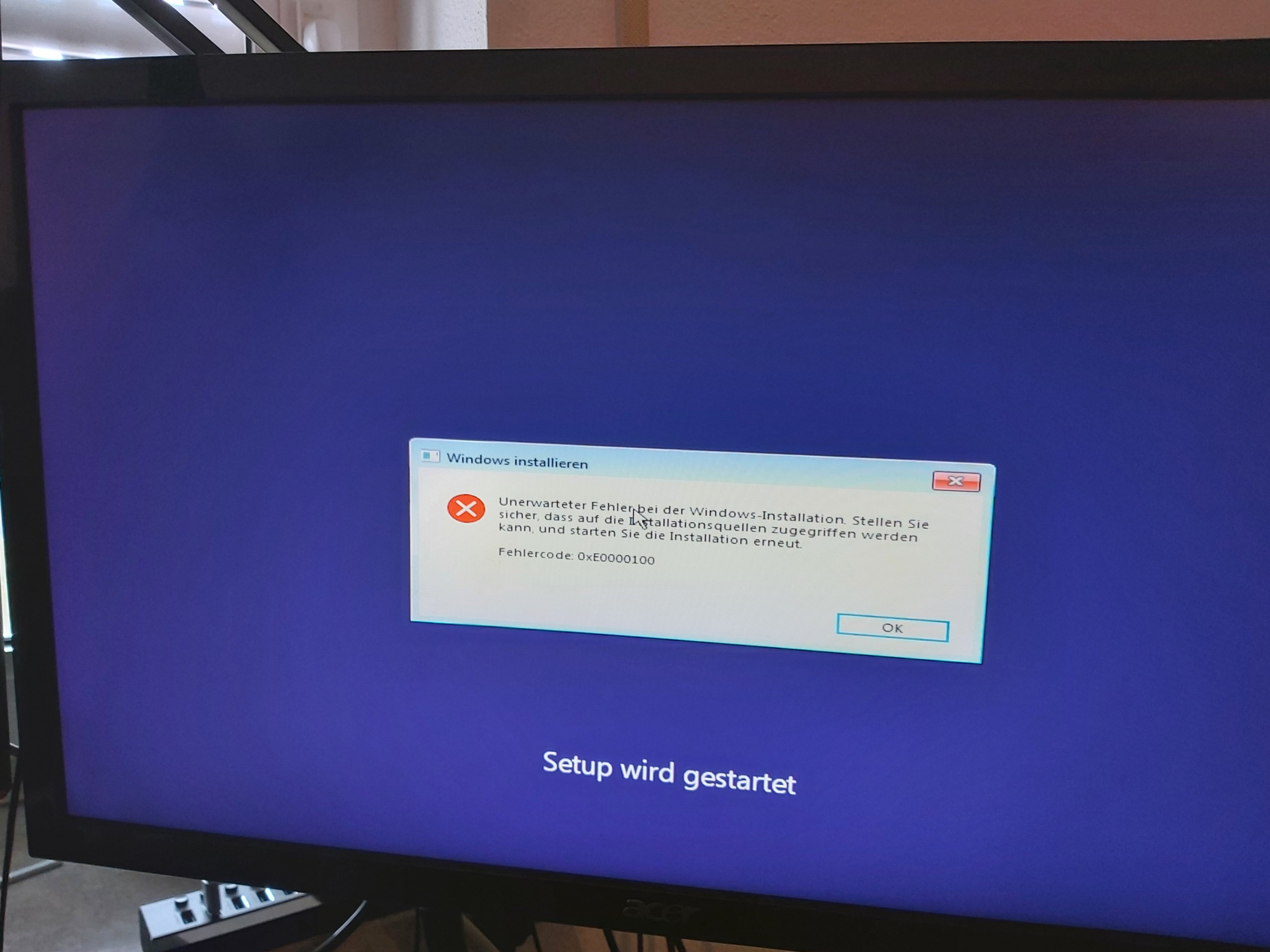 Windows Installation fehlgeschlagen fehlercode 0xE0000100