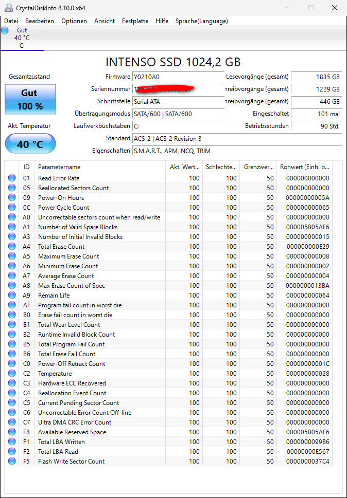 Wenn ich die SSD mit Crystaldisk teste ist immer alles OK.