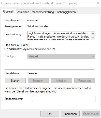 Unter "Dienste" ist dann ja die Installer-Datei zu finden. Und unter "Einstellungen" > "Allgemein" soll dann "Automatisch" eingestellt sein. Aber ich kann dort gar nichts einstellen: