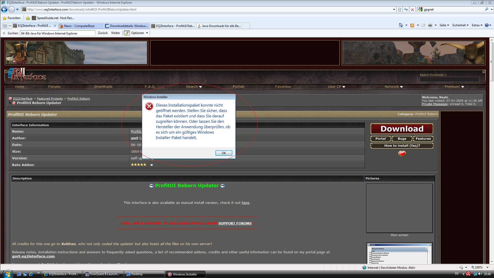 Ich hab ein problem mit Vitsa 64,ich kann z.b. kein Java installieren es kommt immer die meldung (siehe bilder) ,oder .Net Framework 2.0 nix geht .Installiert hab ich .Net Framework 3.5 (über windows Updater ).Oder beim Spiel Supreme Commander installiert das Spiel kein GPGnet und wenn ich GPGnet downloade kommen auch fehler.Ob es jetzt wirklich nur am win installer liegt weis ich nicht genau.