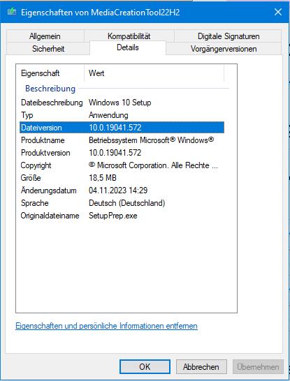 Das aktuelle MCT für Windows 10 hat auch keine Build Nummer der 22H2 (19045.x)tollertyp schrieb:Die Nummer passt bei aktuellen MCTs schon ganz gut meistens, zmindest die Hauptnummer.