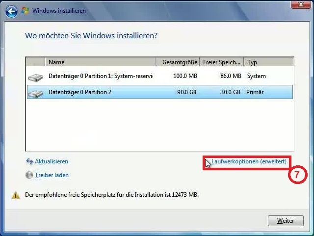 Wenn ich die Windows 7 Cd oder USB starte komme ich bis zum Menü ( wo möchten sie Windows installieren ).