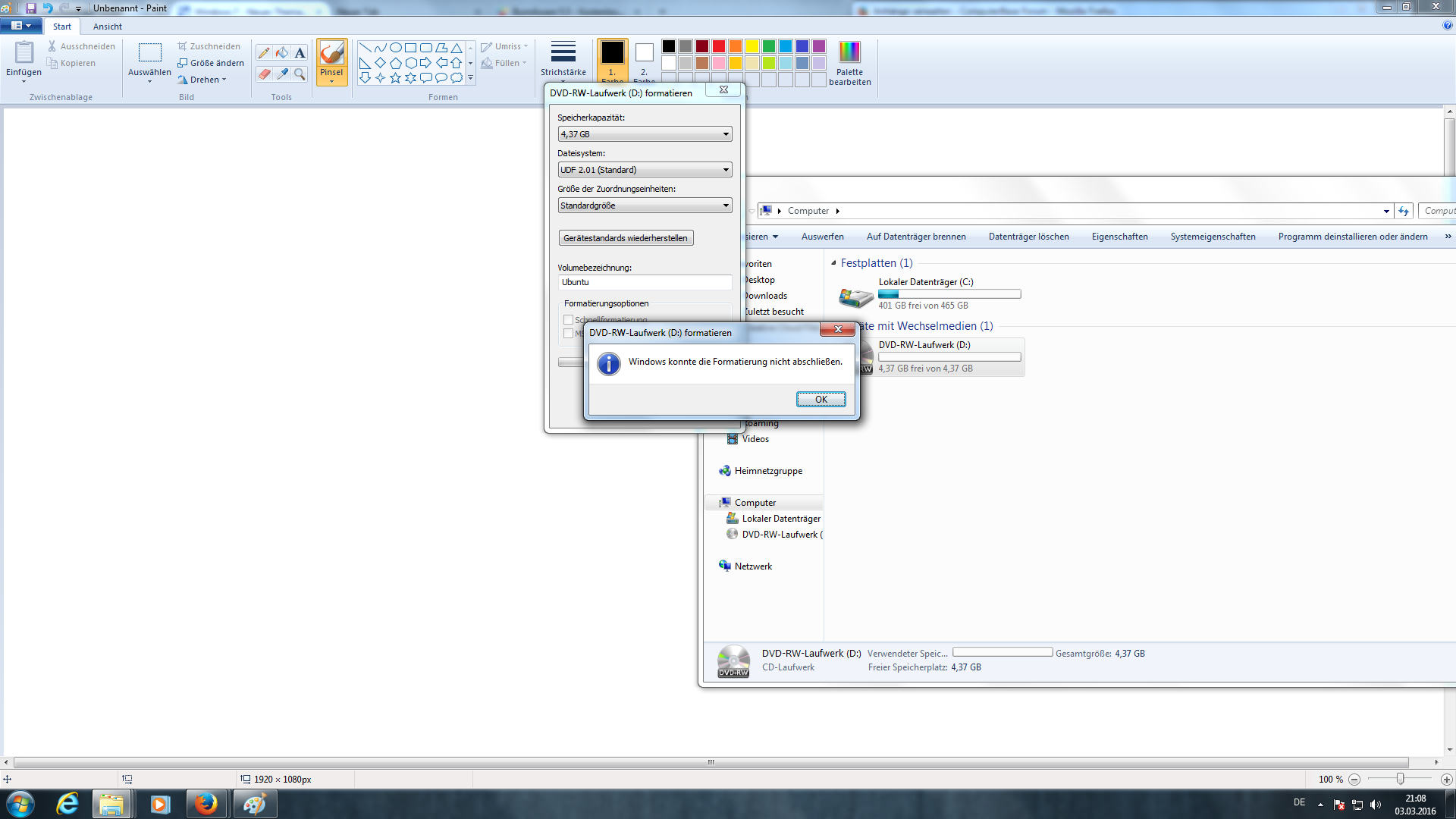 Ich versuche eine ISO auf eine CD RW zu brennen jedoch muss diese erst formatiert werden (nichts ist auf der CD drauf xD) aber immer erscheint dieselbe Fehlermeldung.