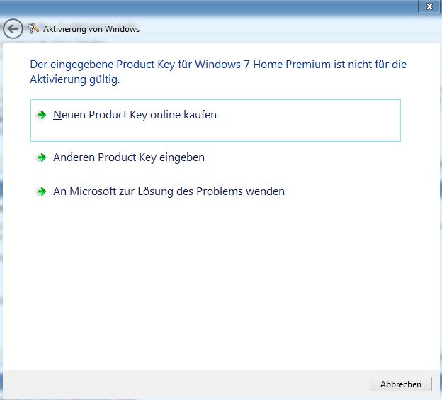 habe neulich auf meinem PC Windows 7 Home Premium installiert, da die alte Installation so zugemüllt war. Ist ja normalerweise gar kein Problem aber dieses mal funktioniert der Key nicht.