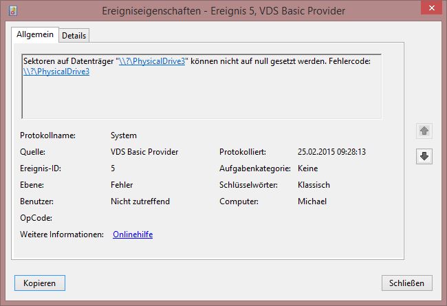 Hab mit meiner neuen 4TB WD Green Schwierigkeiten, ich hoffe, Ihr könnt helfen! Nach dem Einrichten in der Verwaltung kommt das Formatieren und das beendet Mein Win 8.1 Pro mit folgender Fehlermeldung: