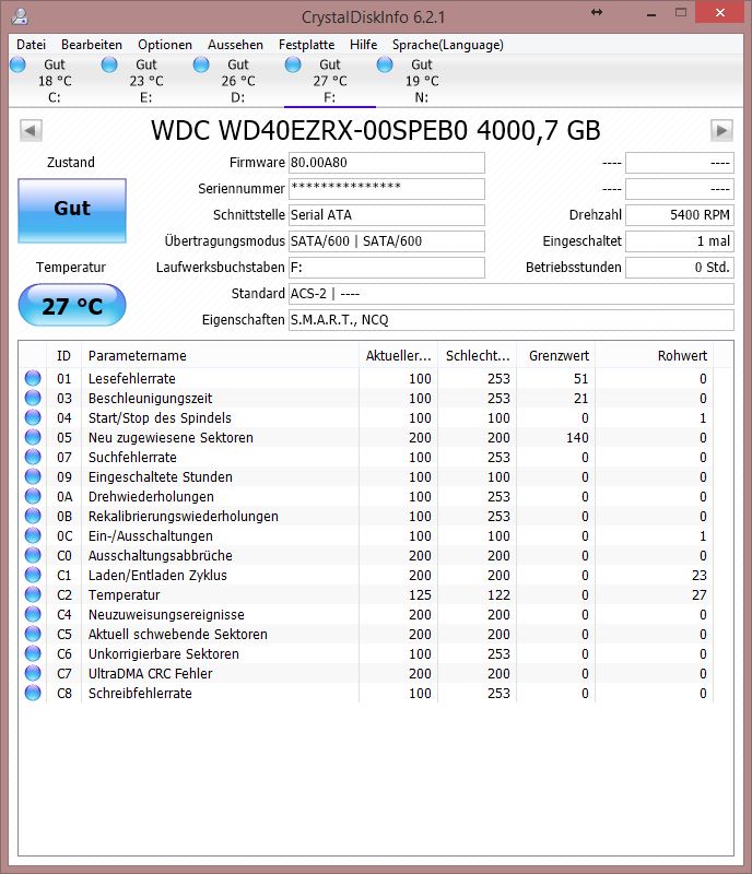 SMART Werte lassen sich auslesen, sind aber normal, Screenshot hängt an! Viele Grüße