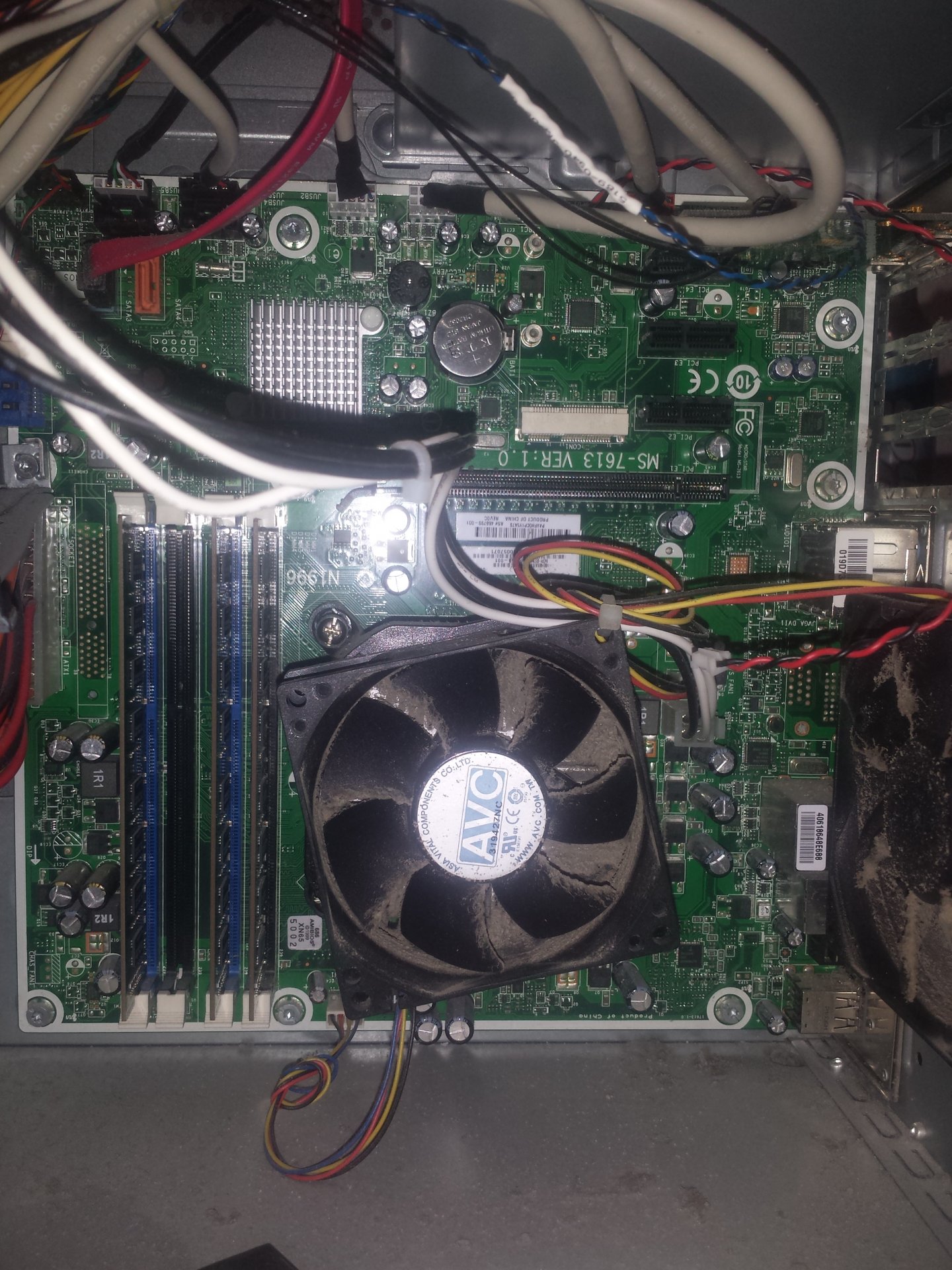 Jemand bat mich, die Hardware zu überprüfen, respektive ein Foto von der Platine zu machen, weil er einen Hardware-Fehler vermutete. Er meinte, irgendwas könnte durchgebrannt sein, der PC ist ja auch schon 10 Jahre alt. Die Fotos habe ich angehängt. Für mich sieht es nicht so aus, als sei irgendwas durchgebrannt. Nur ein bisschen staubig.