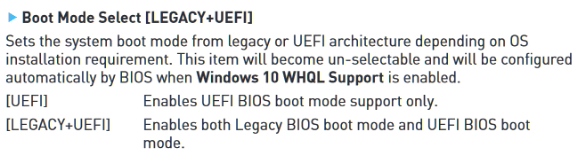 Boot optionen nach Installation.