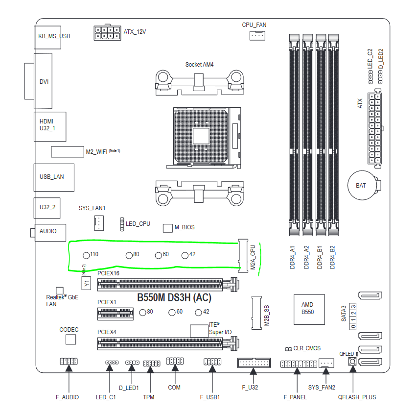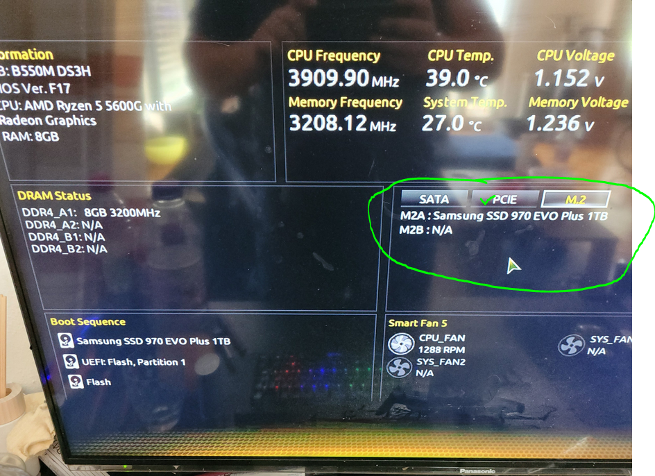 Die NVMe ist wohl im "M2A_CPU" Slot laut seinen Bilder (Bild2),