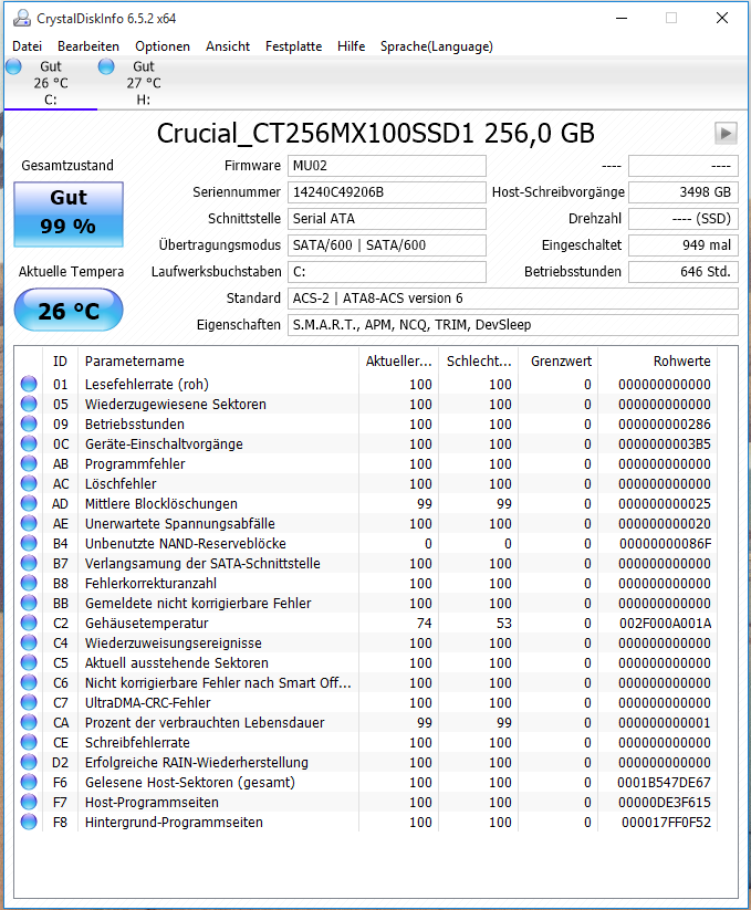 Außerdem habe ich das System noch mal auf der HDD (statt der SSD) installiert, auch das hat keine Abhilfe geschaffen.