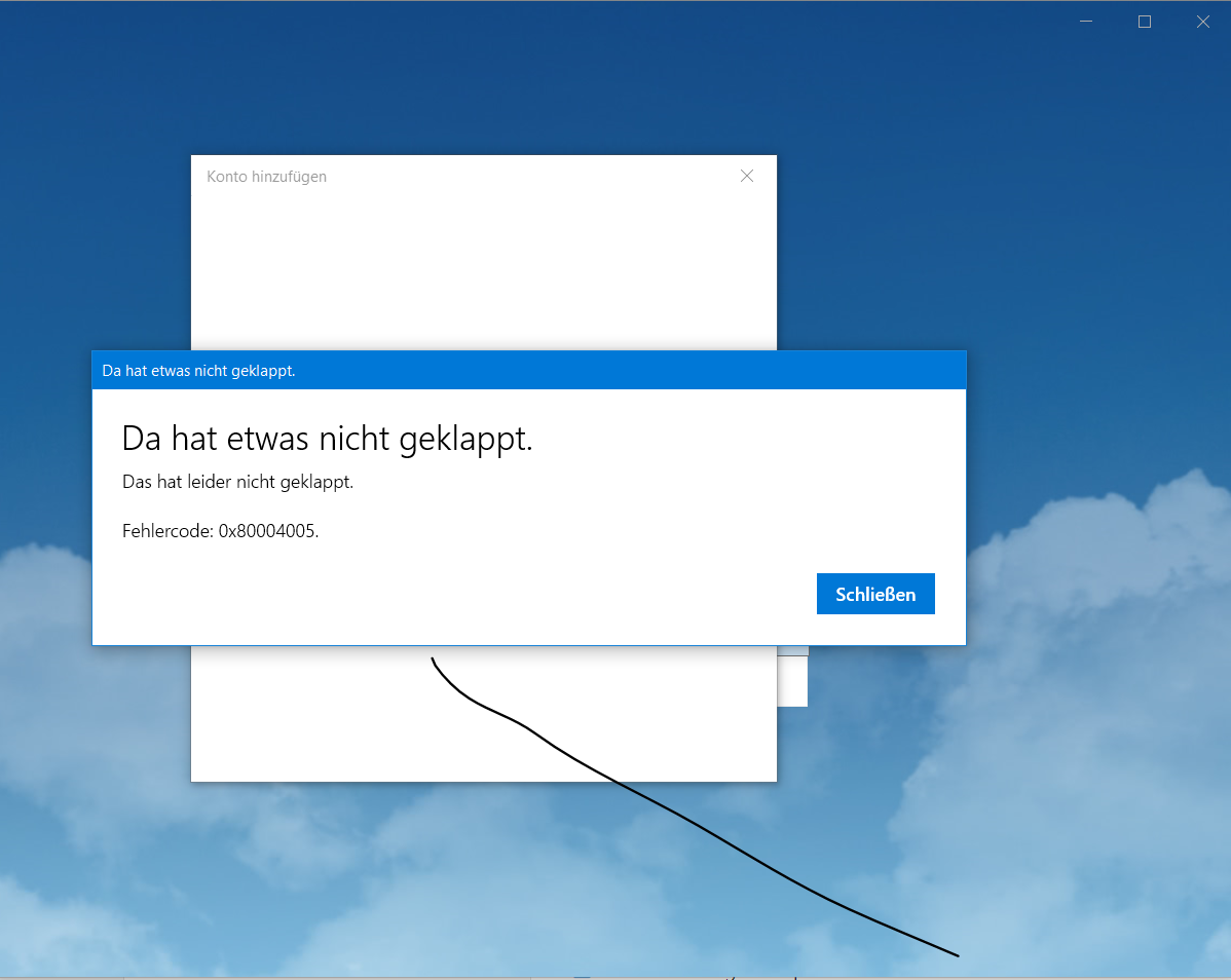 Sobald das Konto ausgewählt, eingegeben wurde, erscheint folgende Fehlermeldung: