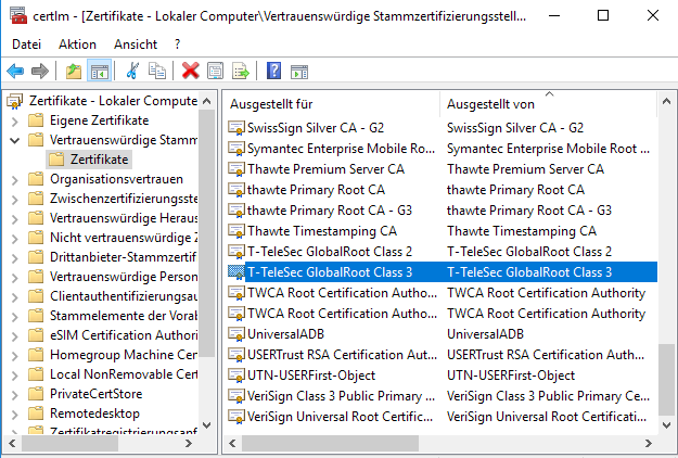 stevens schrieb:Ich sollte t-telesec global root class 3 installieren. War schon installiert, hilft aber nichts.