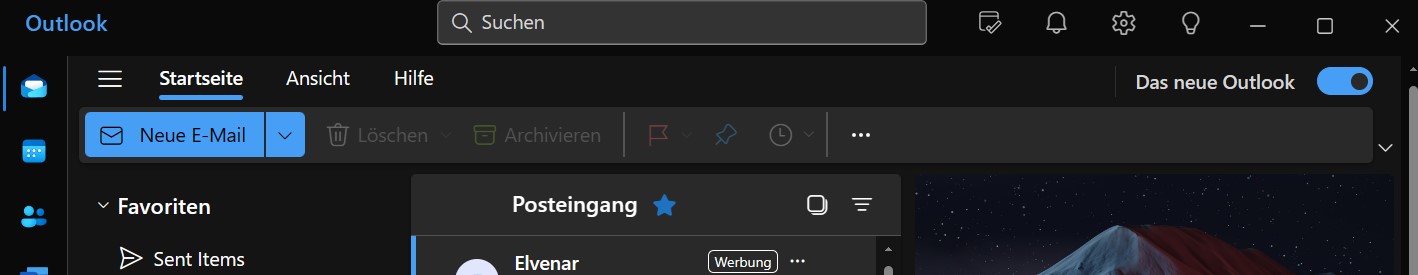 unter Windows 10 ist ja jetzt Windows Mail durch Windows Outlook Mail ersetzt worden. Gibt es ein Möglichkeit beim öffnen von Outlook Mail dieses extrem helle Startbild mit dem Briefumschlag auf dunkel einzustellen? Jedes mal wenn ich jetzt das Outlook öffne braucht man ja eine Sonnenbrille.