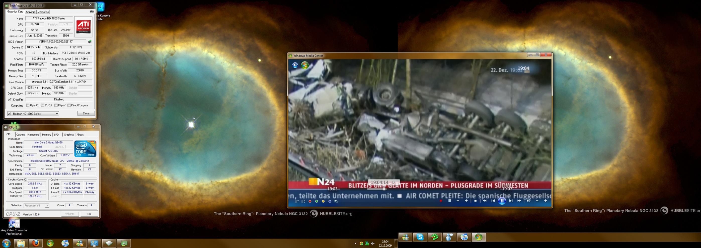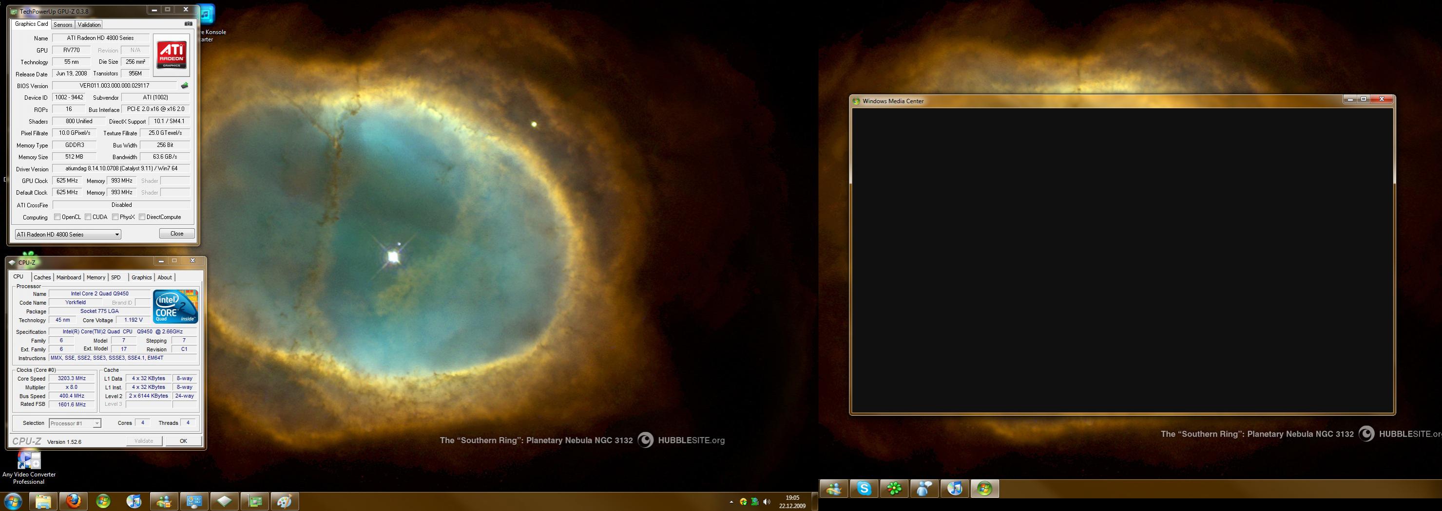 Wie im Titel schon beschrieben habe ich ein Problem mit dem Fernsehbild bei Windows Media Center (egal ob Live-TV, Aufnahme oder DVD), der Ton ist aber weiterhin vorhanden. Ich habe auf meinem 2. Bildschirm ein Bild, wenn ich das Media Center-Fenster teilweise auf ihn verschoben habe, schiebe ich es ganz auf den 2. Monitor, wird das Bild wieder schwarz (siehe Anhang). Unter Windows Vista hat es übrigens noch funktioniert, unter Windows 7 nun nicht mehr. Ich habe bereits die Monitoreinstellung im Media Center verändert - ohne Erfolg, einige neue Codecs installiert - ohne Erfolg, ATI-Treiber neu installiert - ohne Erfolg und selbst eine komplette Windowsneuinstallation (die ich aus einem anderen Grund durchführen musste) half nicht.