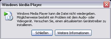 Logisch wäre, dass WMP das nun auch können sollte, aber im Anhang befindet sich die Fehlermeldung, die jedes mal erscheint.