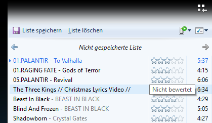 Im Windows Media Player werden in der Playlist die Sterne angezeigt, die noch keine Bewertung haben, da steht wenn man mit der Maus drüber fährt "nicht Bewertet".
