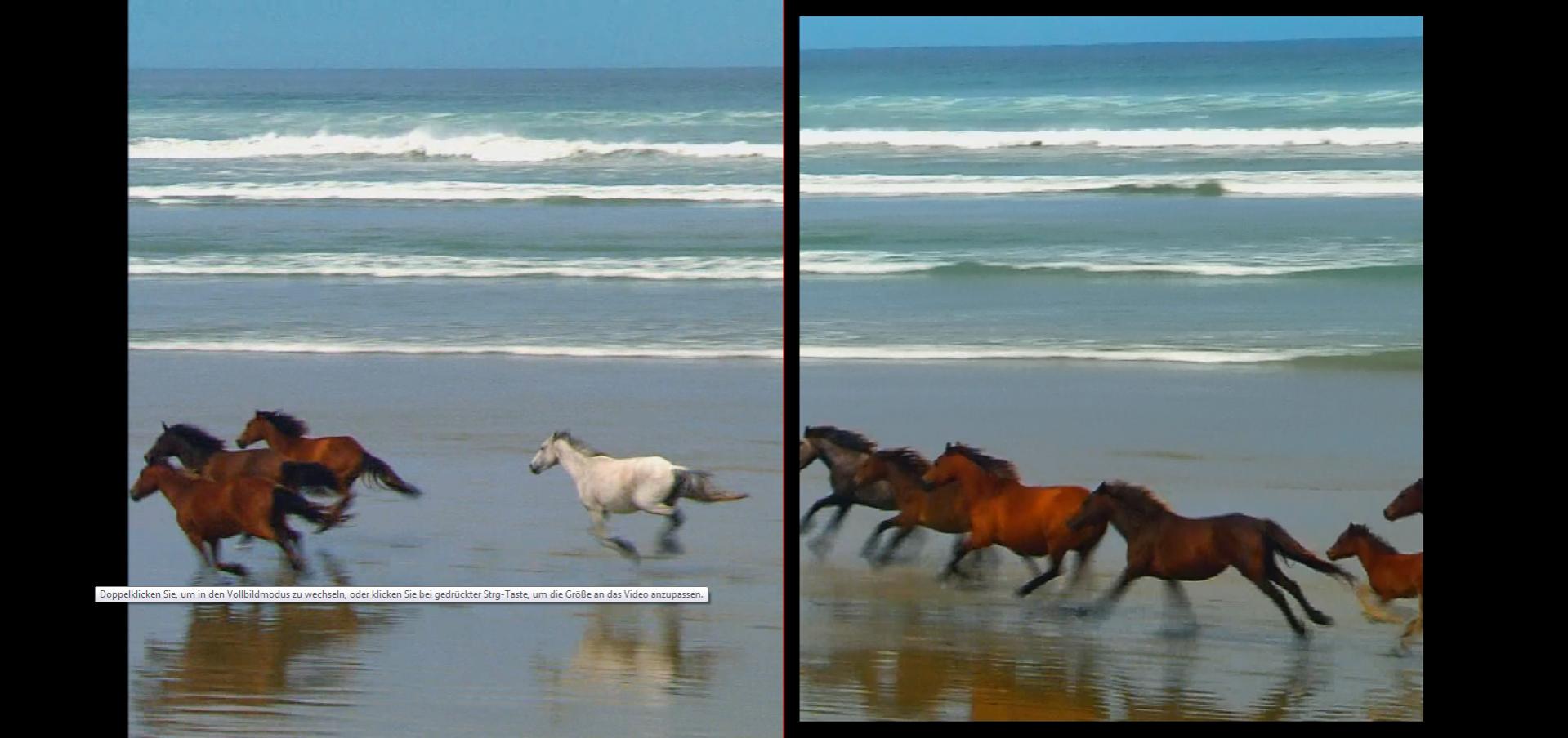 In der Mitte des Videos ist ein schwarzer Streifen und die rechte Hälfte des Videos ist umrandet.
