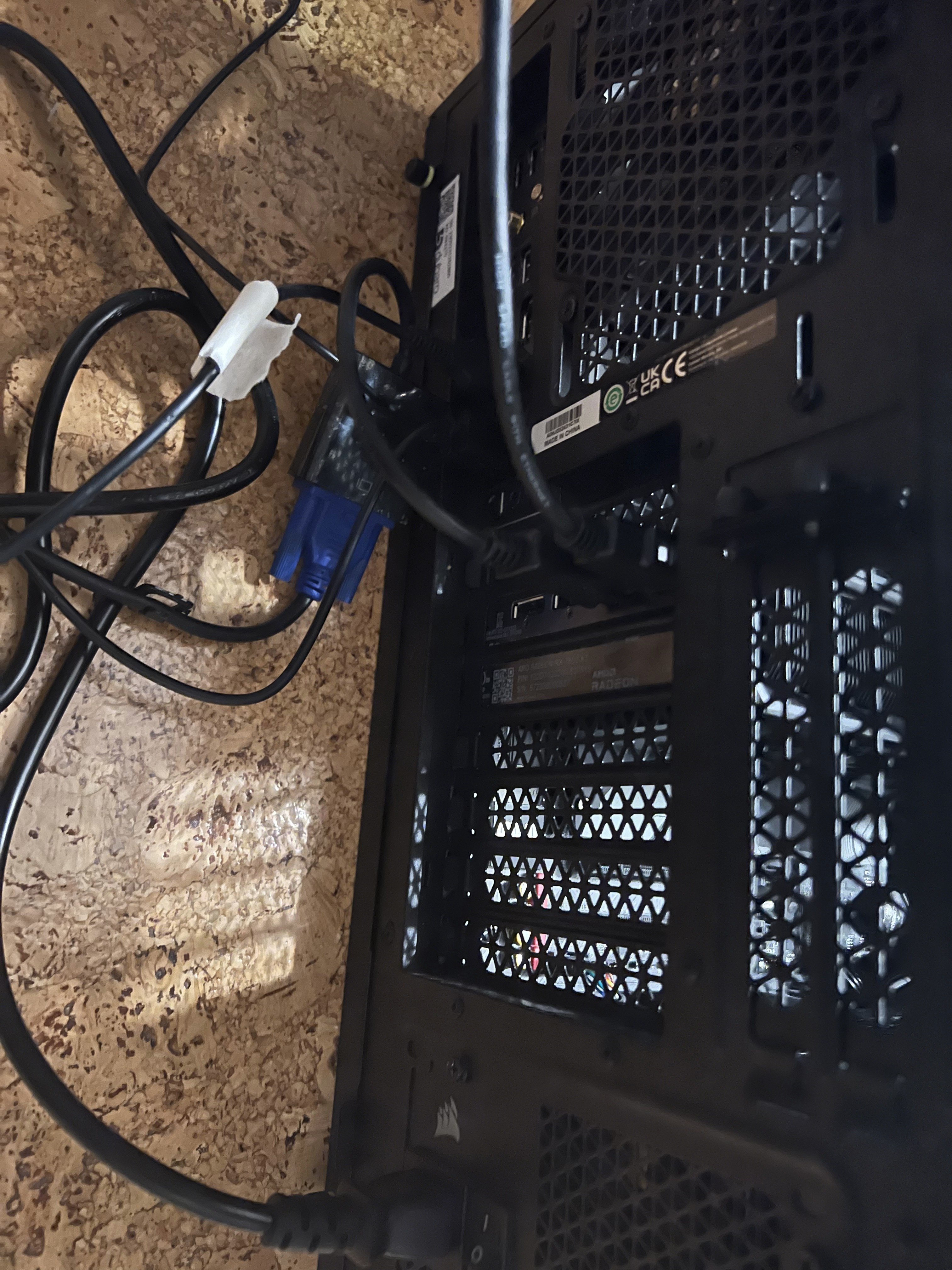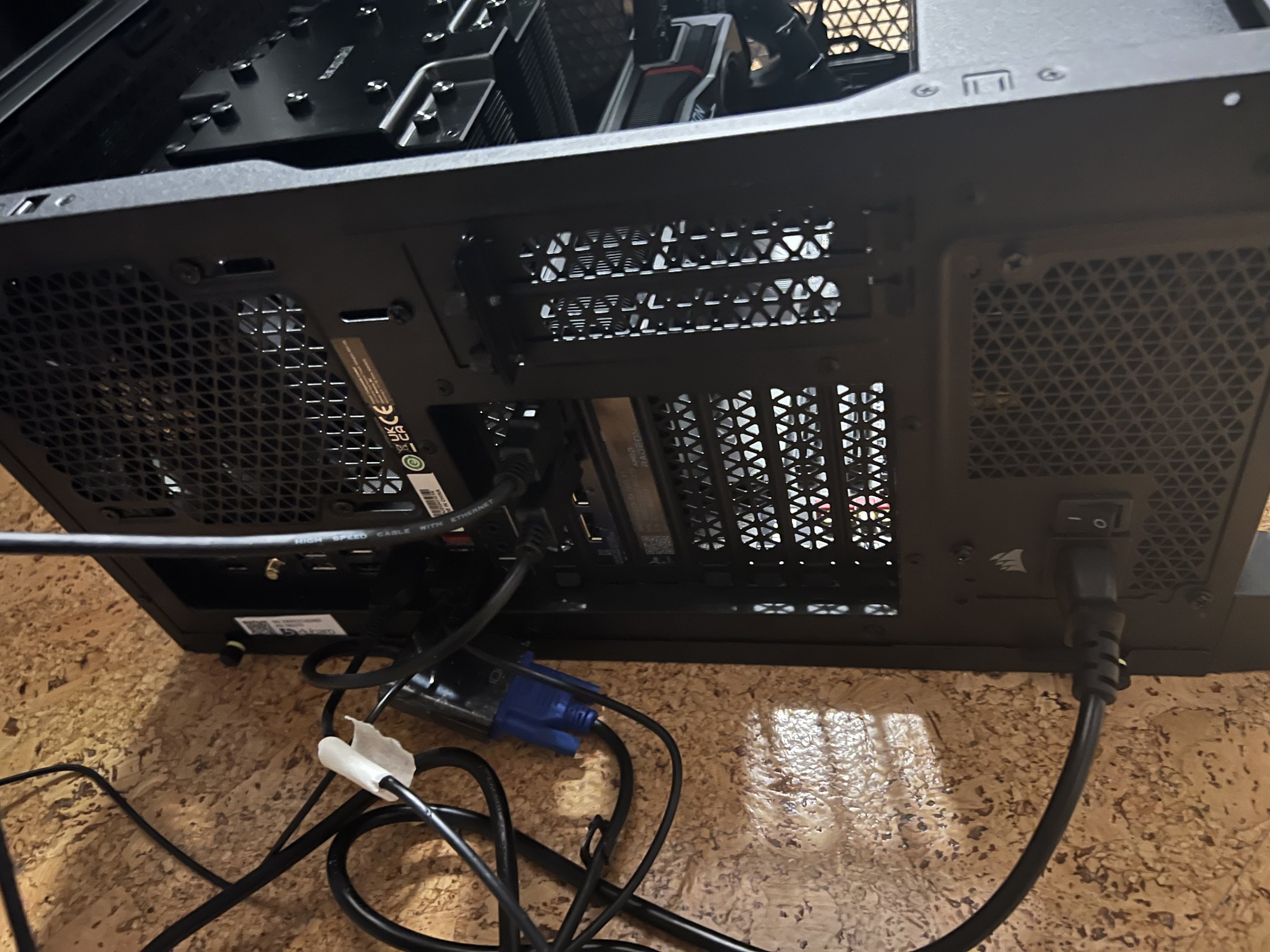 Es wird versucht zwei Bildschirme über die Grafikkarten Slots anzuschließen, funktioniert leider nicht.