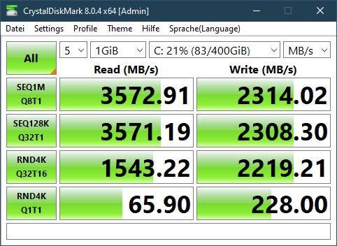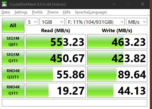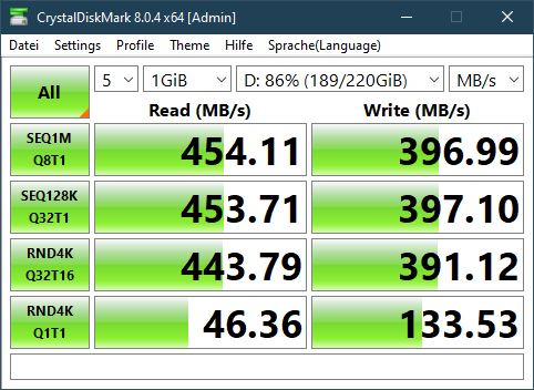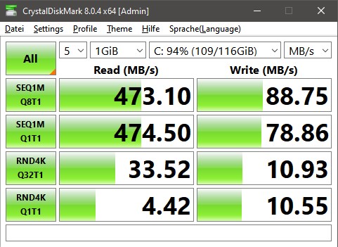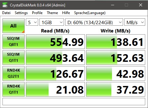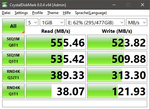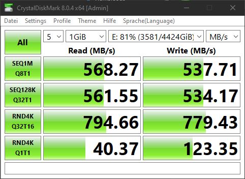 Ich hab noch drei weitere SATA SSDs eingebaut: 250, 500 und 1000 GB. Gerade ist eine 512 GB MS SSD mit deutlich schnellerer Schreib- und Lesegeschwindigkeit auf dem Weg zu mir.