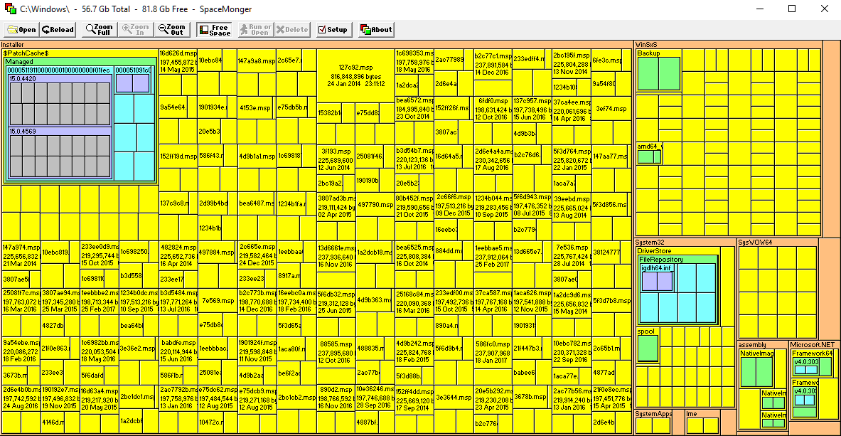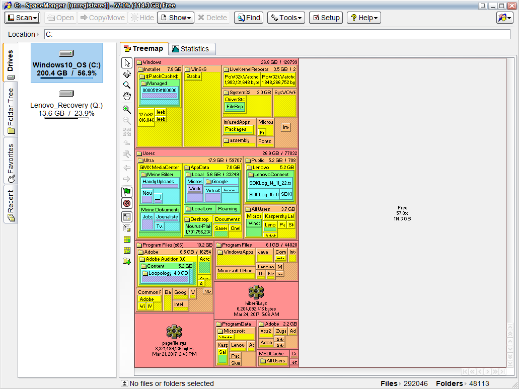 Bin ziemlich verwirrt: nachdem ich auf meinem Laptop vor einigen Monaten den blöden Fehler begangen habe, am Windows Insider Programm teilzunehmen, und das zunächst auch noch im "Fast Ring", habe ich seither Schadensbegrenzung betrieben und bin dann in den moderaten Insider-Modus gewechselt. Seit dem Neuesten Build(ich glaube *15058) scheine ich mich auf meinem Laptop auch wieder der Benutzbarkeit anzunähern. Trotzdem war mir schon vor einigen Tagen aufgefallen, dass mein Windows-Ordner exorbitante 59,3 GB anzeigt, wenn man im Laufwerk C: mit der rechten Maustaste drauf klickt und "Eigenschaften" auswählt.