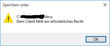 Wenn ich eine Word-Datei, die seit Win7 direkt auf der C-Partition liegt, bearbeite und abspeichern möchte, bekomme ich folgende Meldung: