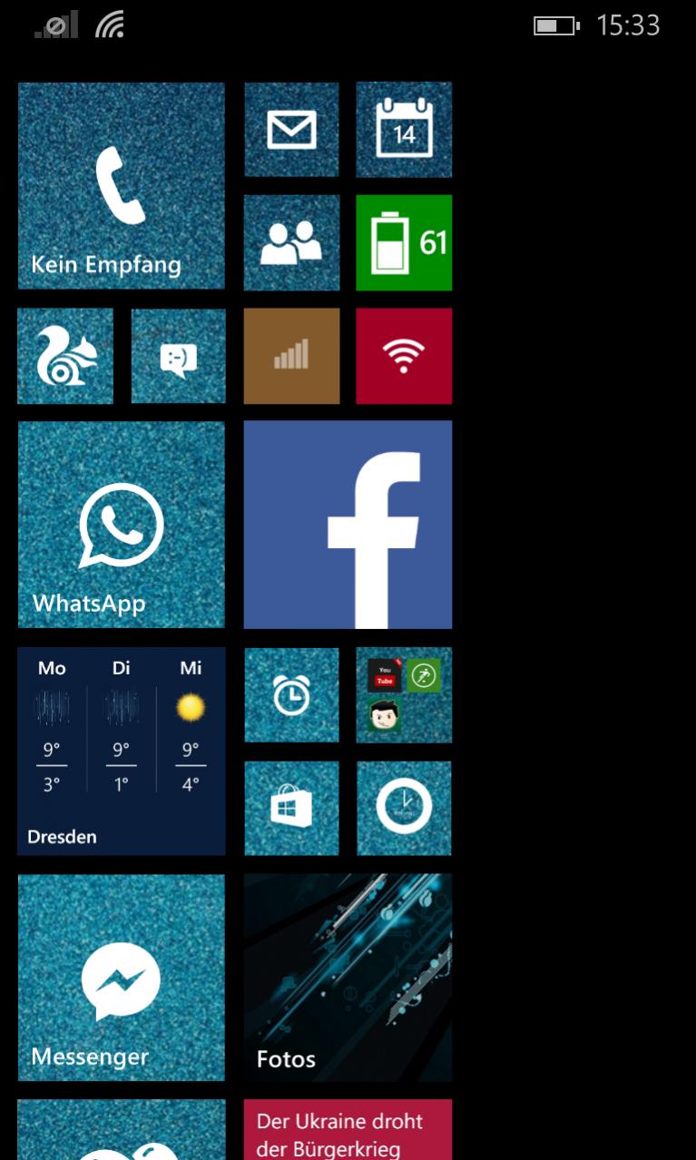 Der Beweis eine Kachelreihe mehr dafür wirds natürlich auf dem 4,5 Zoll Display arg klein was die anderen Kacheln angeht außerdem sieht man das man nun wirklich bilder als Kachelhintergrund nehmen kann