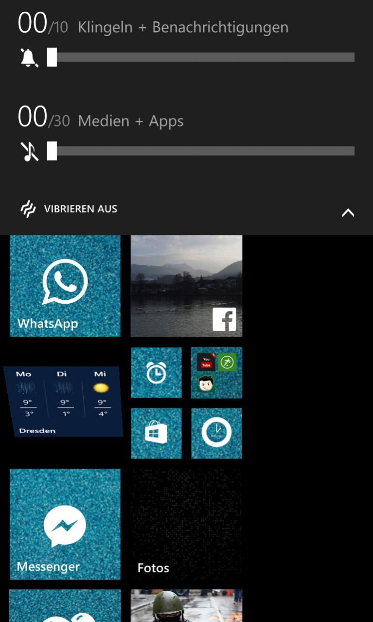 Das mit dem Hintergrundbild ist aber noch nicht wirklich zu gebrauchen. Die meisten Kacheln haben nicht die Akzentfarbe und werden auch nicht mit dem Hintergrundbild versehen. Navi-Apps, die ganzen Kamera-Apps, Spiele, Musik, Wetter, Fotos... alles wie vorher.