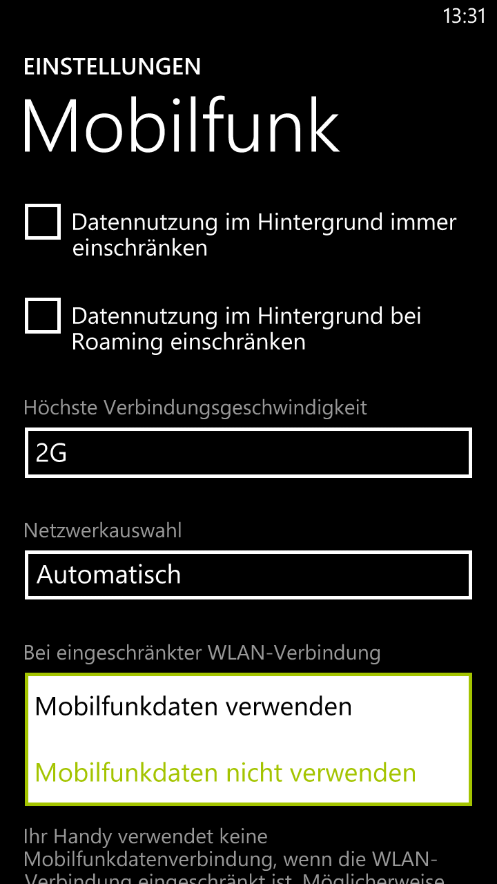 Übrigens habe ich noch eine Neuerung mit GDR3 gefunden... unter Mobilfunk gibts jetzt mehr Optionen..