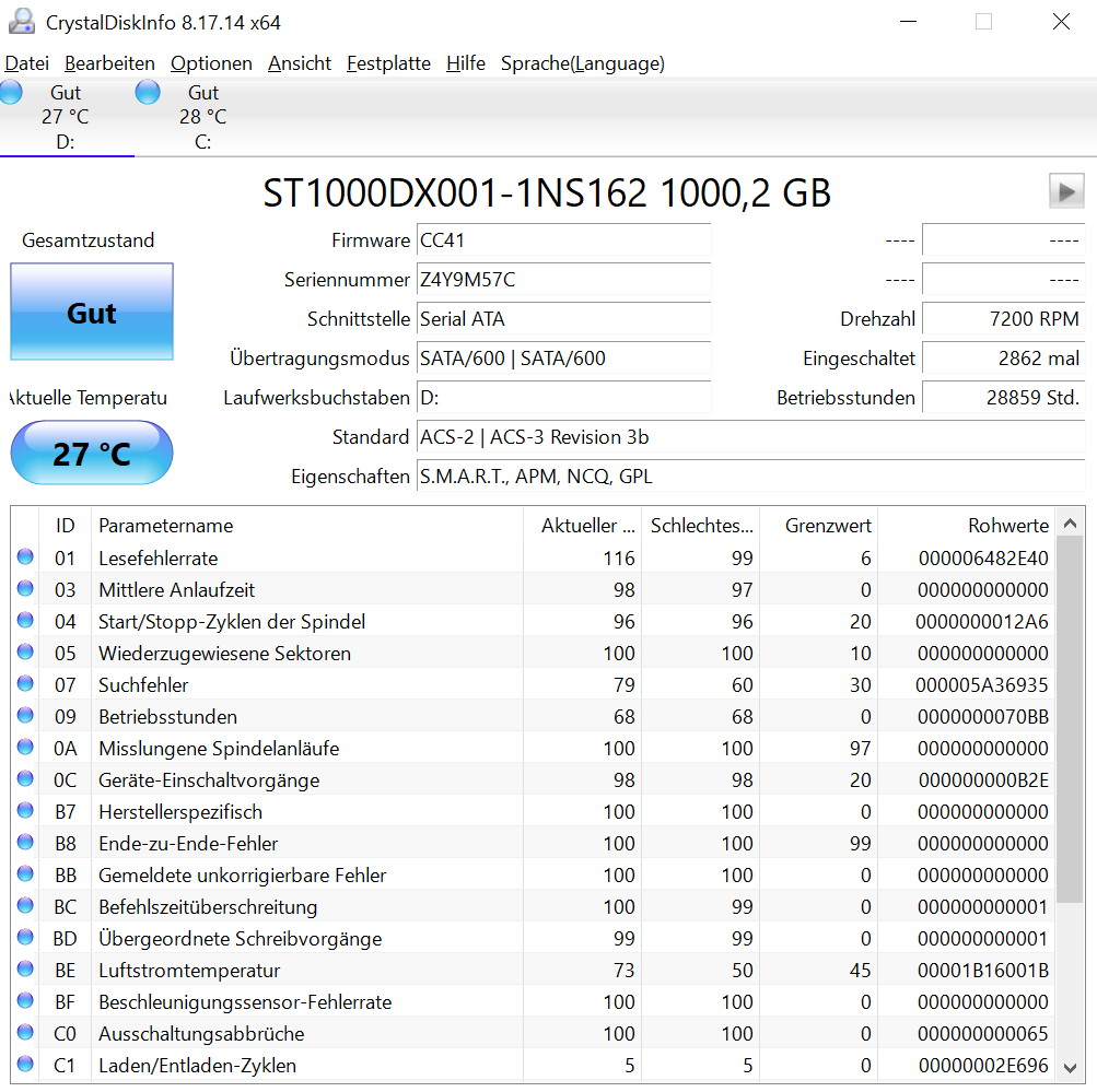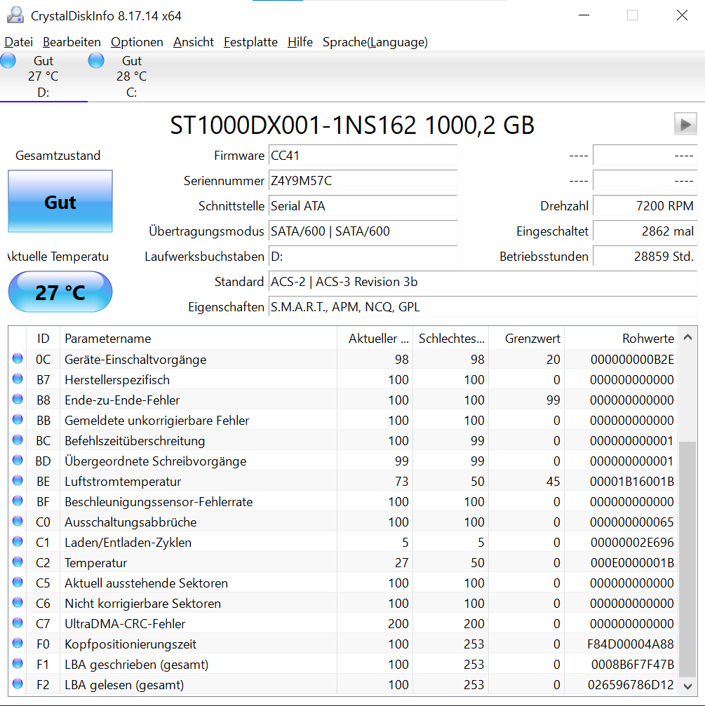 Nun, also ich persönlich werde nicht ganz schlau aus der CrystalDiskInfo.