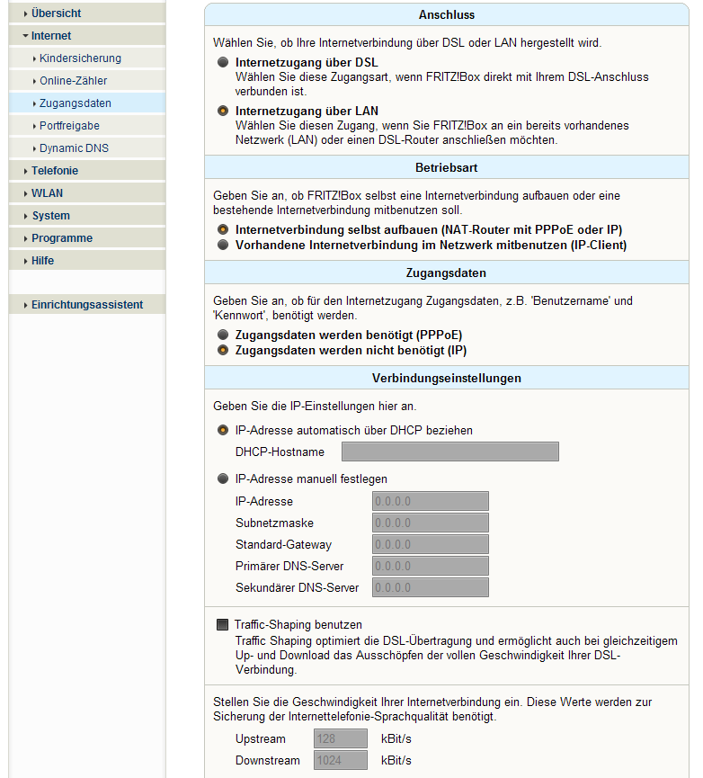 Das Internet hier wird direkt per LAN vom Provider geliefert.