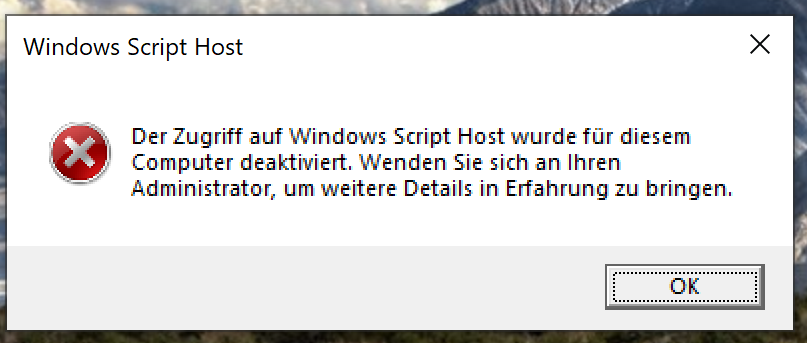 Wenn ich das Mache bekomme ich bei Systemstart nun die Meldung, das Sript Host nicht aktiv ist. Sprich ich tausche eine Fehlermeldung gegen eine andere...