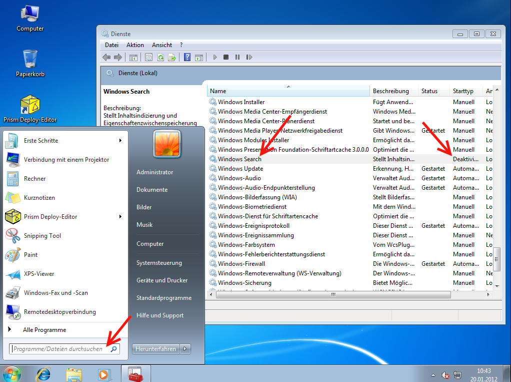 Dies kann man ja über Start –> Systemsteuerung -> Programme und Funktionen -> Windows-Funktionen aktivieren/deaktivieren -> WindowsSearch abhaken entfernen.