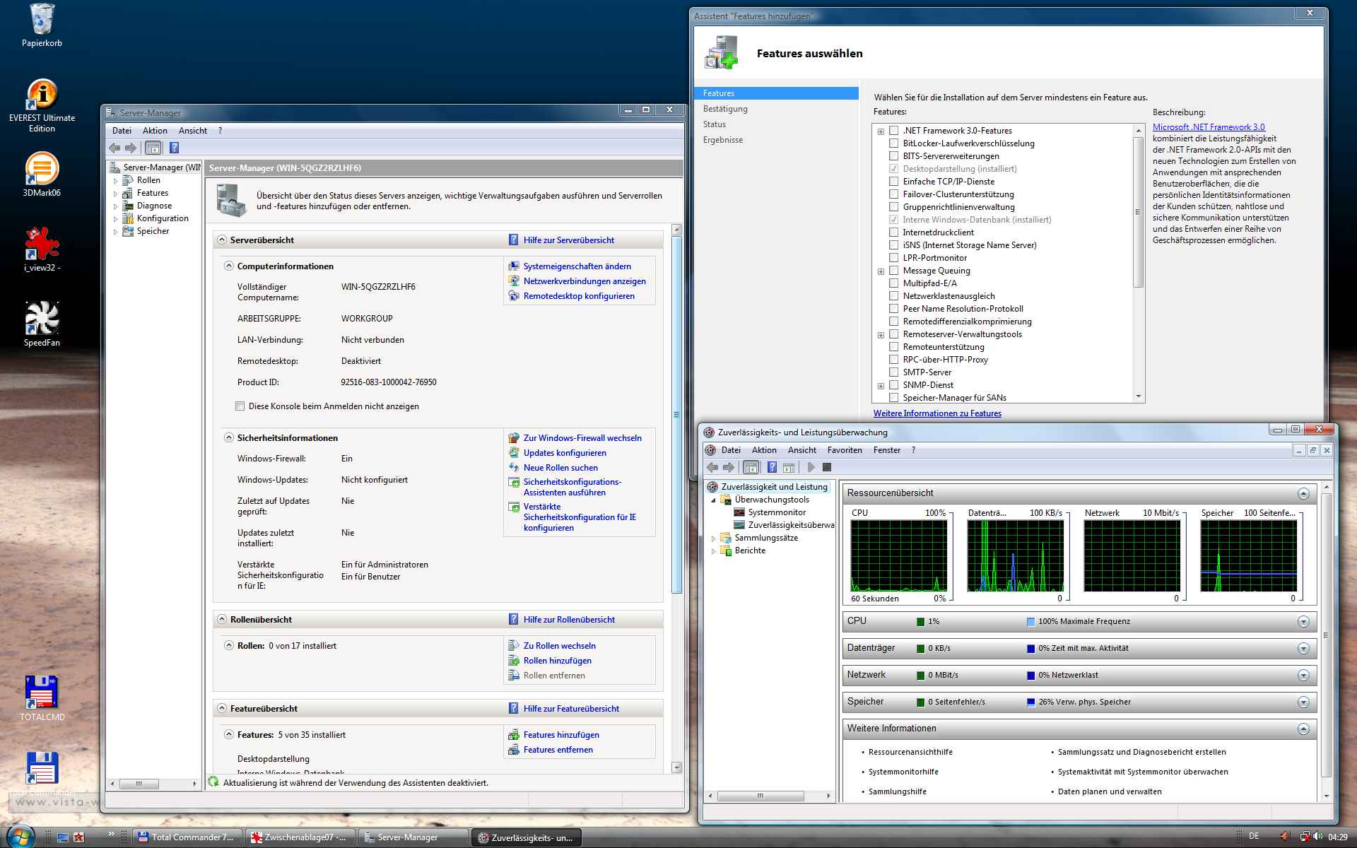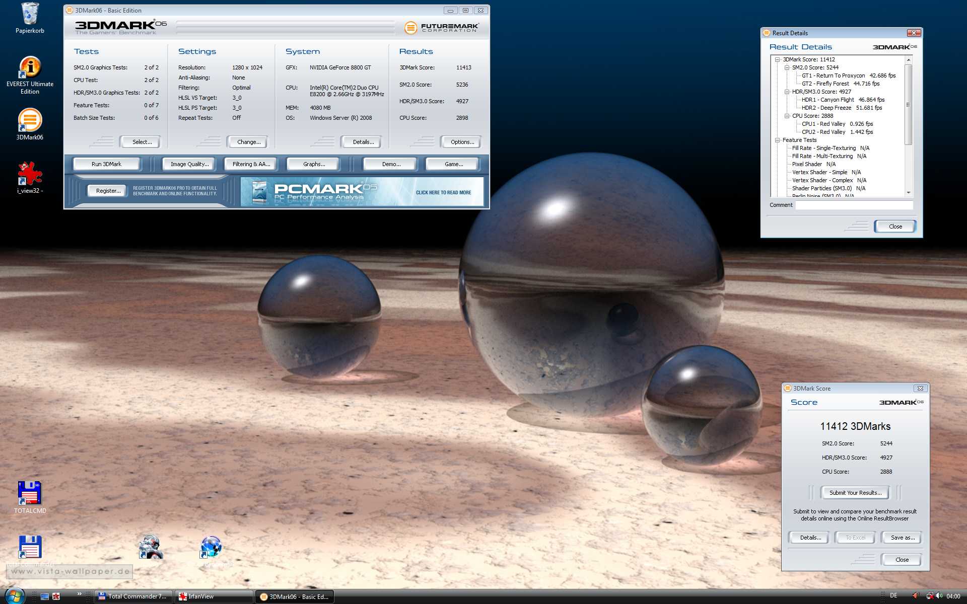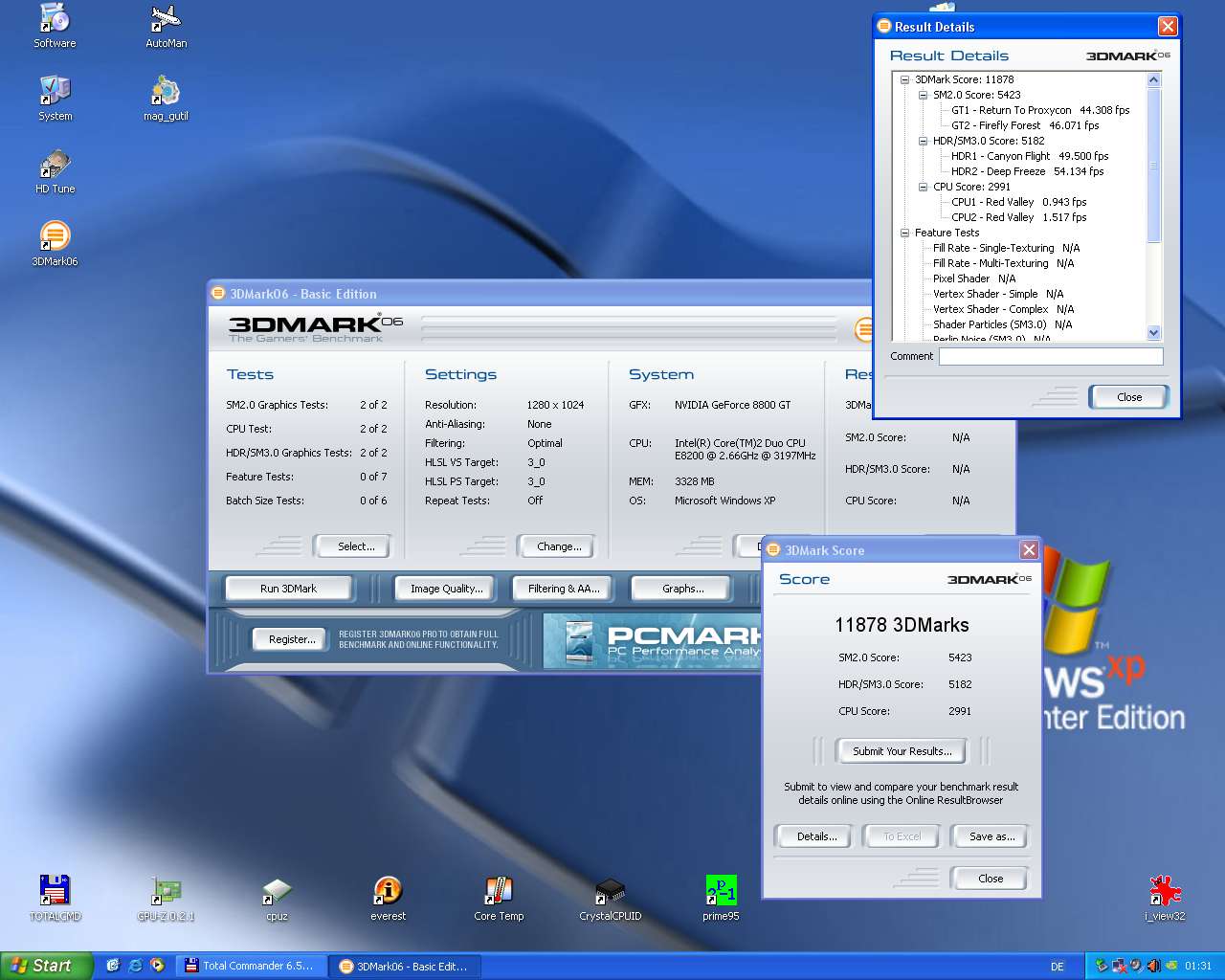 Everest einschliesslich Stresstest - 3DM06 (ein paar Punkte weniger als unter XP...)
