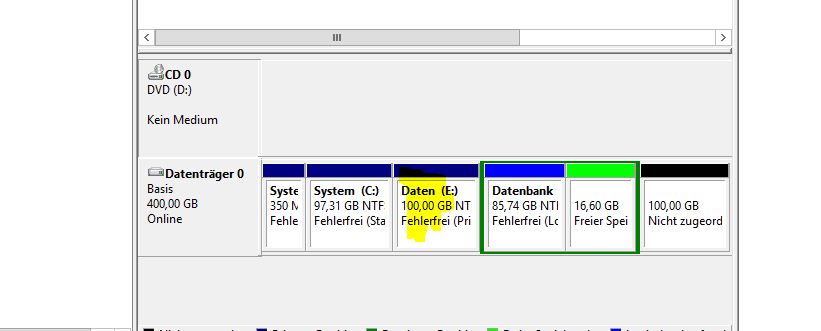 Solltest du diese Partition jedoch noch öfters vergrössern müssen, würde es sich empfehlen, das E ganz ans Ende zu verschieben, anschliessend die Datenbank-Partition an Windows anschliessend anlegen, dann kannst du in Zukunft das E mit Windows-Bordmitteln vergrössern.