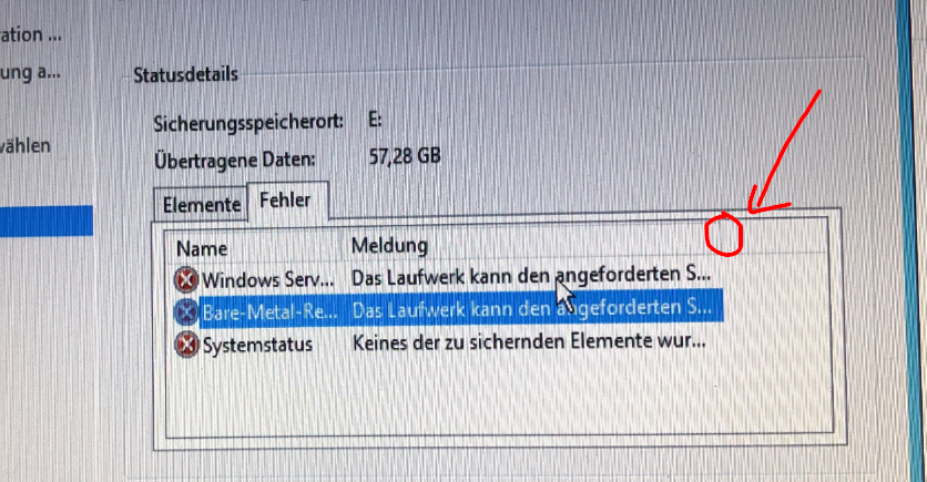 Ich wollte gerade eine Sicherung machen aber es kommt immer wieder der gleiche Fehler anbei ein Bild.