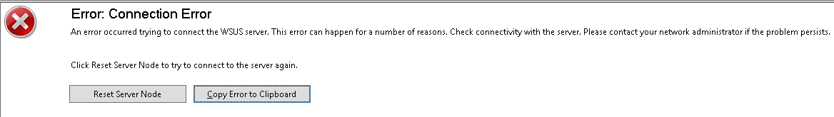 The WSUS administration console was unable to connect to the WSUS Server via the remote API.