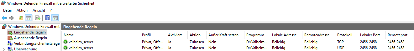 Über die Firewalleinstellungen habe ich für einige Spieleserver Ports auf UDP und TCP freigegeben.