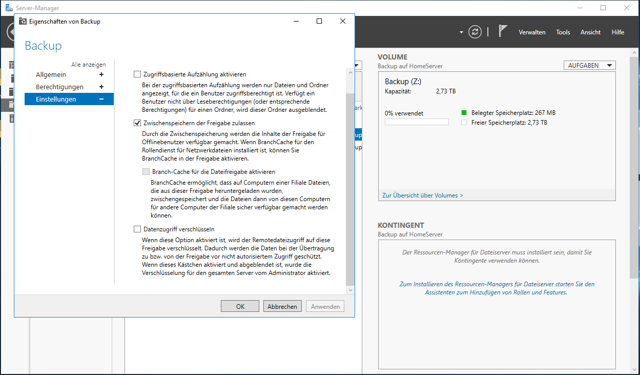 Es geht dabei wie im Bild zu sehen um die Option "Datenzugriff verschlüsseln" im Server Manager unter Windows Server 2016.