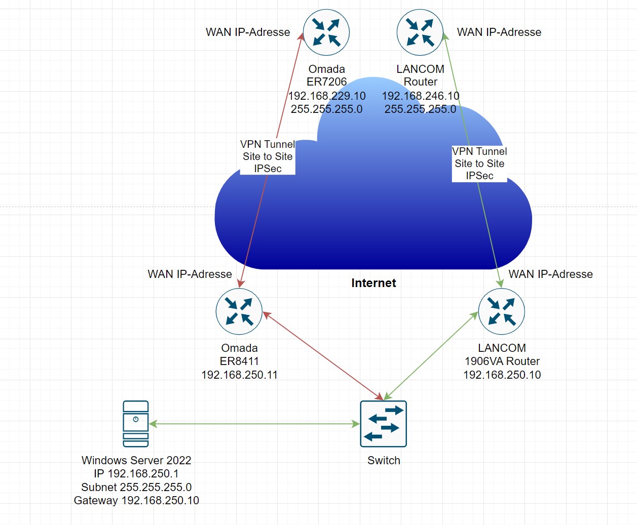Ich habe einen Windows Server 2022 der als Standard-Gateway die 192.168.250.10 verwendet dies ist ein LANCOM Router über diesen Router sind via VPN andere Standorte verbunden und können per RDP auf den Server arbeiten.