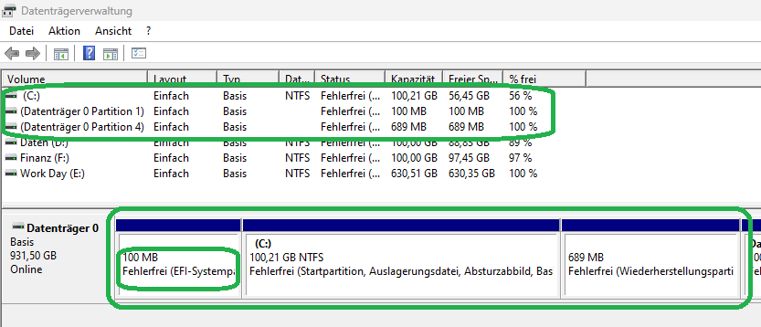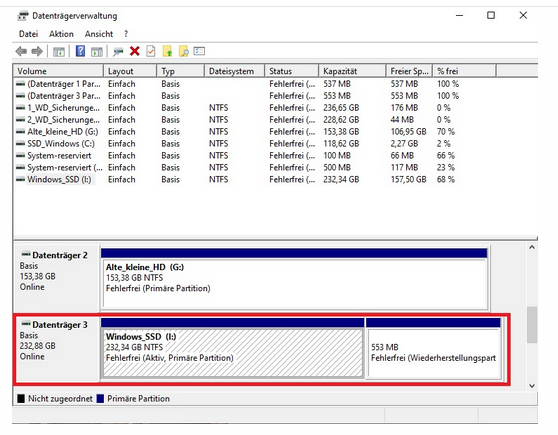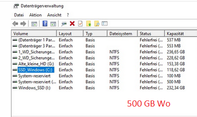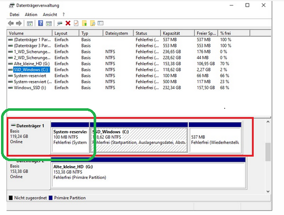 Woran kann das liegen? Die Platte lässt sich samt Daten ganz normal aufrufen, wenn ich Windows von einer anderen SSD starte..
