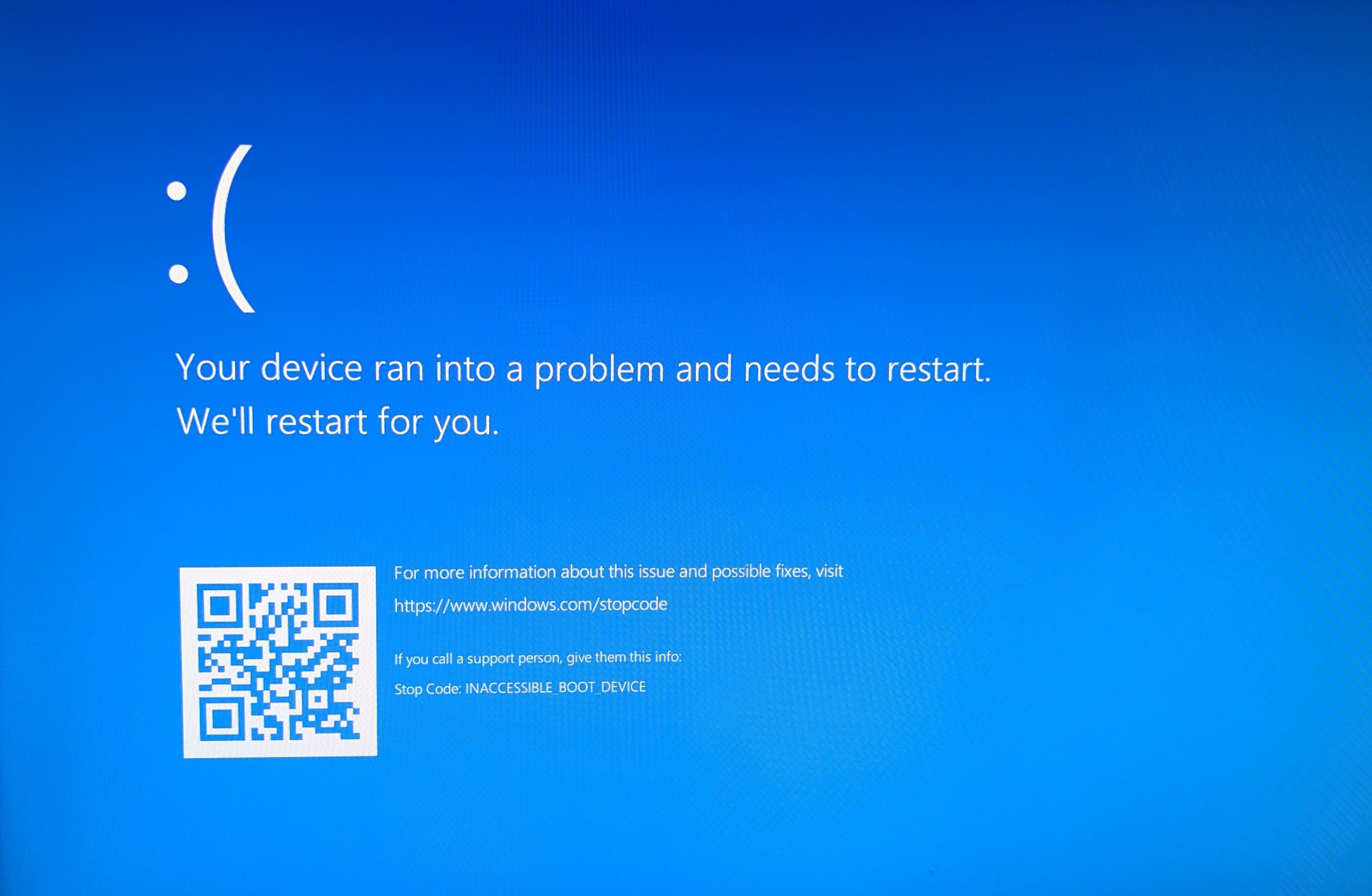 In manchen Fällen: "Inaccessible Boot Device" + Blackscreen nach Neustart + Maus und Tastatur funktionieren nicht, wenn Windows versucht zu laden und dann das Fehlerbild kommt