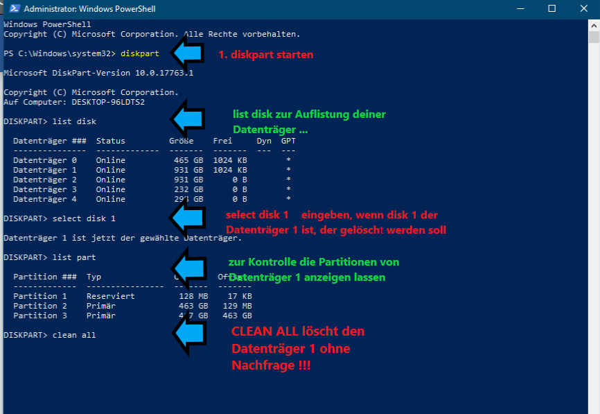 Rechtsklick Partition löschen geht nicht in der Datenträgerverwaltung?