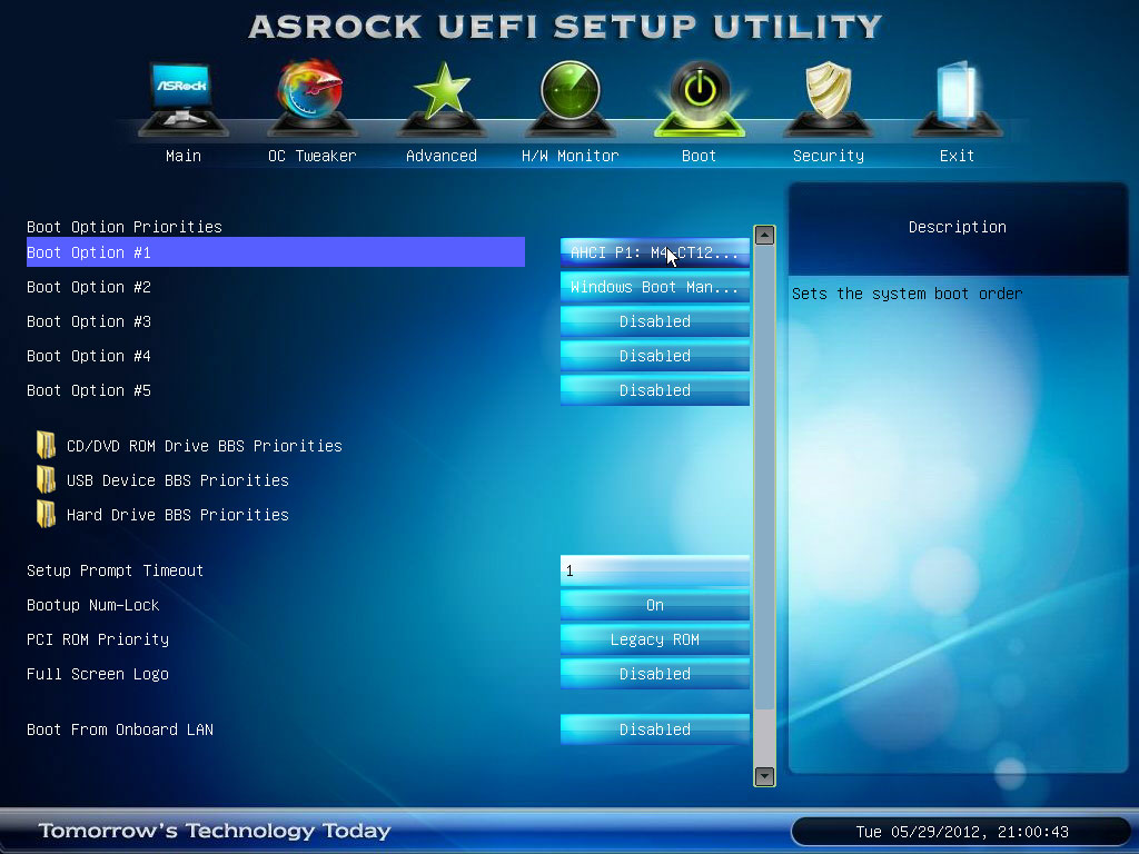 Hab im Bios die Bootreihenfolge geändert, so dass die SSD auf erster Priorität steht. (vorher stand [removable device] als erste, dann die SSD)